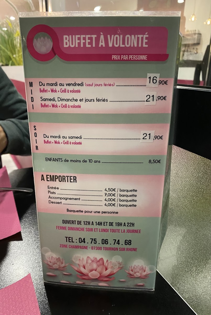 Located in the heart of Tournon-sur-Rhone, Fleurs D'Asie offers an inviting buffet experience that captures the essence of Asian cuisine with a French twist. Known for its affordability, this restaurant has gained a loyal following due to its impressive array of fresh dishes. Customers rave about the delectable sushi and succulent seafood options, with highlights including flavorful salmon and shrimp available on Sundays.